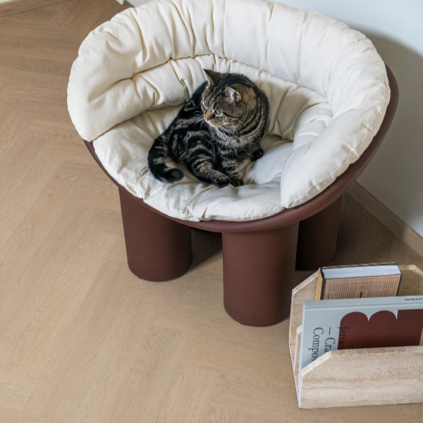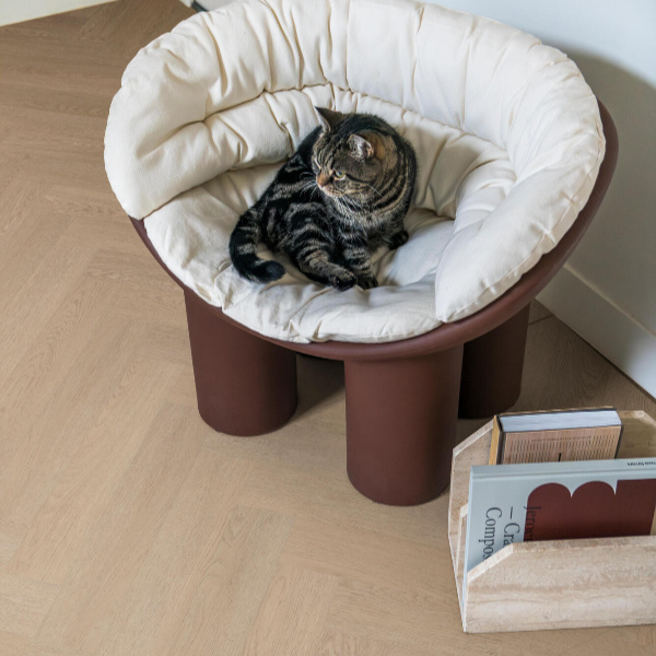 De BerryAlloc Click Visgraat Spirit Soul CLCF 55 Luna 60002405 is een stijlvolle PVC visgraatvloer met een natuurlijke houtlook en een luxe uitstraling. De planken hebben een afmeting van 107 × 609 mm en een totale dikte van 6 mm, wat zorgt voor een stabiele en comfortabele basis. Dankzij de subtiele microvelling krijgt de vloer een realistisch en verfijnd karakter. Het praktische click-systeem maakt de installatie eenvoudig en efficiënt. Met gebruiksklasse 33 is deze vloer geschikt voor intensief woongebruik en licht projectmatig gebruik. Daarnaast voldoet de vloer aan de 10 dB geluidsnorm en is hij volledig geschikt voor vloerverwarming. De verpakking bevat 1,97 m².