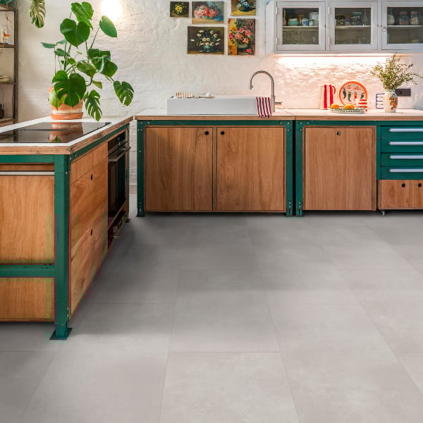 De BerryAlloc Lijmstrook Spirit Soul GD 55 Santi 60002403 is een stijlvolle PVC tegelvloer in lijmvariant met een kalme betonlook in een lichtgrijze tint. De vloer heeft een rustige uitstraling die in vrijwel elke interieurstijl perfect tot zijn recht komt. De tegels hebben een dikte van 2,5 mm, een breedte van 468 mm en een lengte van 933 mm. De pakinhoud bedraagt 4,18 m². De vloer is geschikt voor vloerverwarming en heeft een 4V microvelling, wat zorgt voor een rustige en harmonieuze uitstraling tussen de tegels. De gebruiksklasse is 23 en de vloer wordt geleverd met levenslange fabrieksgarantie.