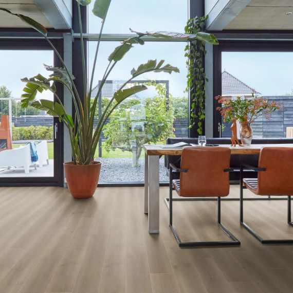 Laminaat Queens Naturel Bruin Eiken 6402 is een kwalitatieve laminaatvloer met een natuurlijke uitstraling. De 1,28 meter lange vloerdelen hebben een breedte van 19,4 centimeter en een dikte van 8 millimeter. De Queens Naturel Bruin Eiken 6402 heeft een 4 zijdige v-groef rondom waardoor deze nauwelijks van echt hout te onderscheiden is. De gebruiksklasse is 32 waardoor deze geschikt is voor zowel residentieel gebruik als commercieel gebruik. De Queens Naturel Bruin Eiken 6402 laminaatvloer heeft een fabrieksgarantie van 20 jaar en is geschikt voor zowel vloerverwarming als vloerkoeling. Laminaat vloeren van het merk Floorlife zijn onderhoudsvriendelijk, krasvast, vlekbestendig, antistatisch en door het unieke clicksysteem makkelijk zelf te leggen.