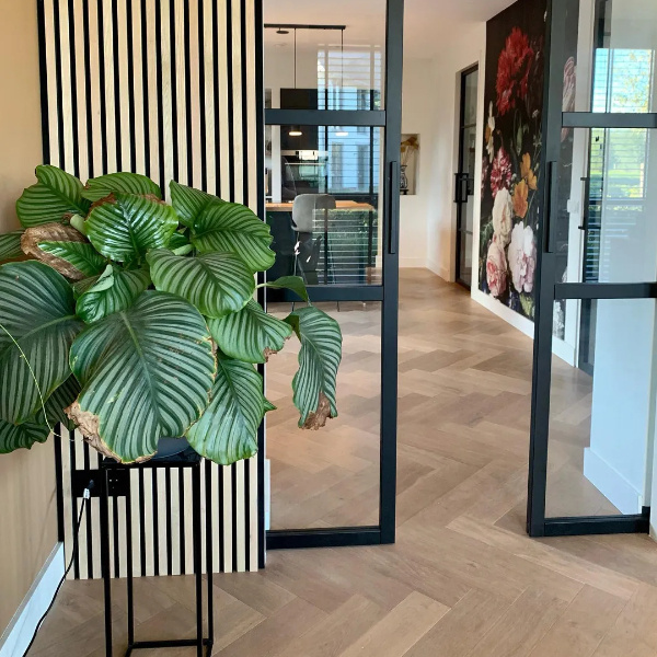 Parket Visgraat Eiken Onbehandeld Select 12 x 60 cm is een kwalitatieve houten vloer. De 600 mm lange vloerdelen hebben een breedte van 120 mm en een dikte van 14/3 millimeter. De Parket Visgraat Eiken Onbehandeld Select 12 x 60 cm parket vloer heeft een 4 zijdige v-groef. De vloer is geschikt voor zowel vloerverwarming als vloerkoeling. Hierdoor is de vloer geschikt voor ieder interieur. De Parket Visgraat Eiken Onbehandeld Select 12 x 60 cm is gemakkelijk zelf te leggen en kan zwevend gelegd worden. De kant en klare vloer is direct beloopbaar en kan meteen in gebruik genomen worden.